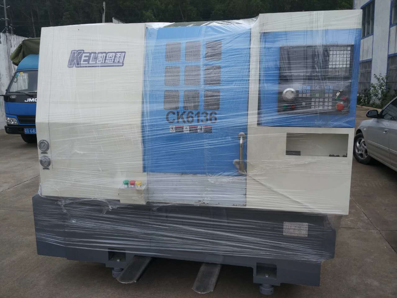 送貨出車江門市黃青老板(黃朗老板)訂購凱恩利機型:CKX6136C ∠45斜床身高配置標準排刀機 (大行程X=850mm) 品牌:凱恩利)出貨了