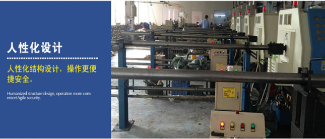 特點:自動化生產(chǎn)線,一次性可裝30支料左右,自動加料、自動卸料尾,不用人加料,省人工,一人可看30臺機、安全操作。