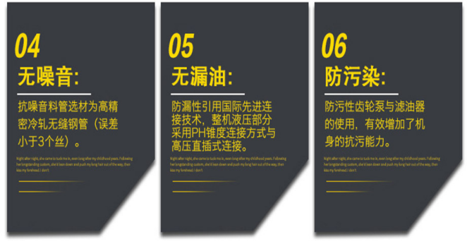 齒輪泵與濾油器的運用,有用增加了機身的抗污才能,大大提高機身壽數(shù)與液壓油的運用壽數(shù),處理原資料不潔凈而導(dǎo)致的疑問