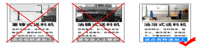 六、CNC數(shù)控車床油浴送料機---性能對比(重錘式簡易送料機 油膜型送料機、油浴送料機)