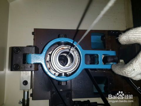 第四步:調(diào)整送料機尾部支架使尼龍線在機床主軸孔尾部中心位置;